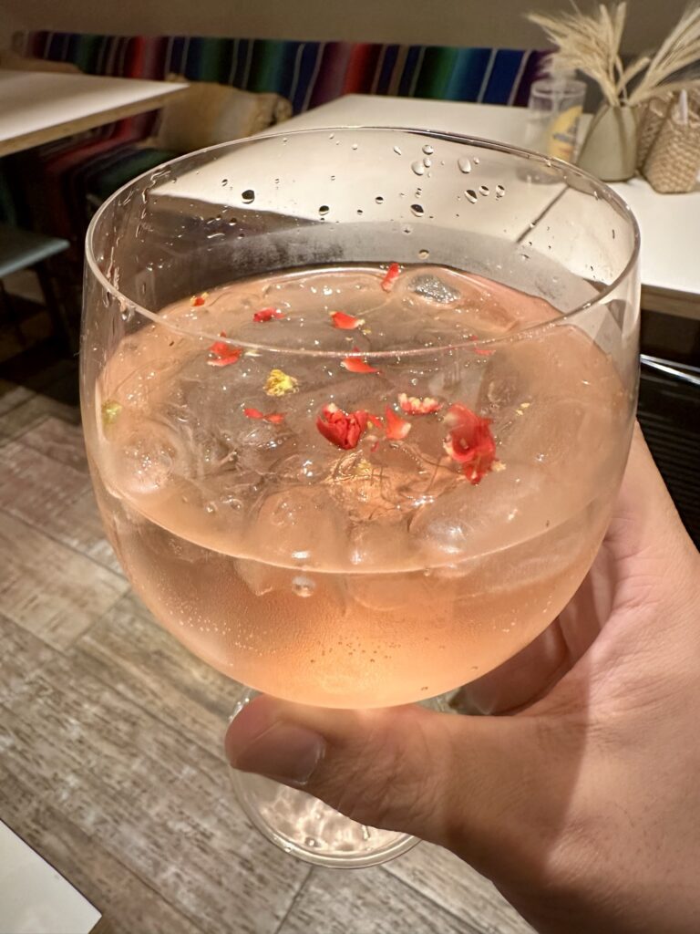 It was a Mexican-based restaurant with a stylish exterior covered in green ferns.