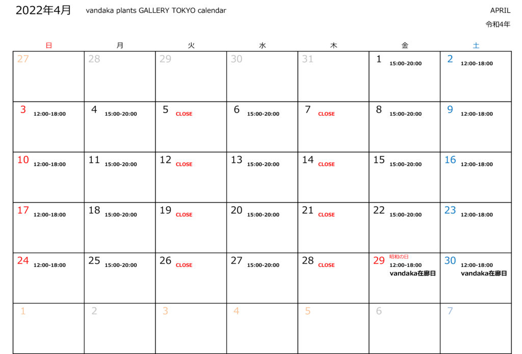 4月のvandaka在廊日ですが、